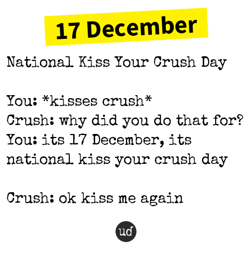 It is an initiative by the youth to have fun and spend some time with their crush without any strings attached. It's kiss your crush day on the [19th of october. Bro ima kiss my crush tomorrow guy 2: So do you wonder if it was a friendly kiss or a meaningful one? This crowdsourcing of data method to assess the national kiss your crush day date is used as opposed to being connected with any government sacntioned lists :d hurrah for.